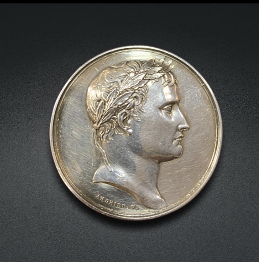 Ασημένιο μετάλλιο με προτομή Ναπολέων και στην πίσω όψη ο αετός της αυτοκρατορίας . 41 γρ