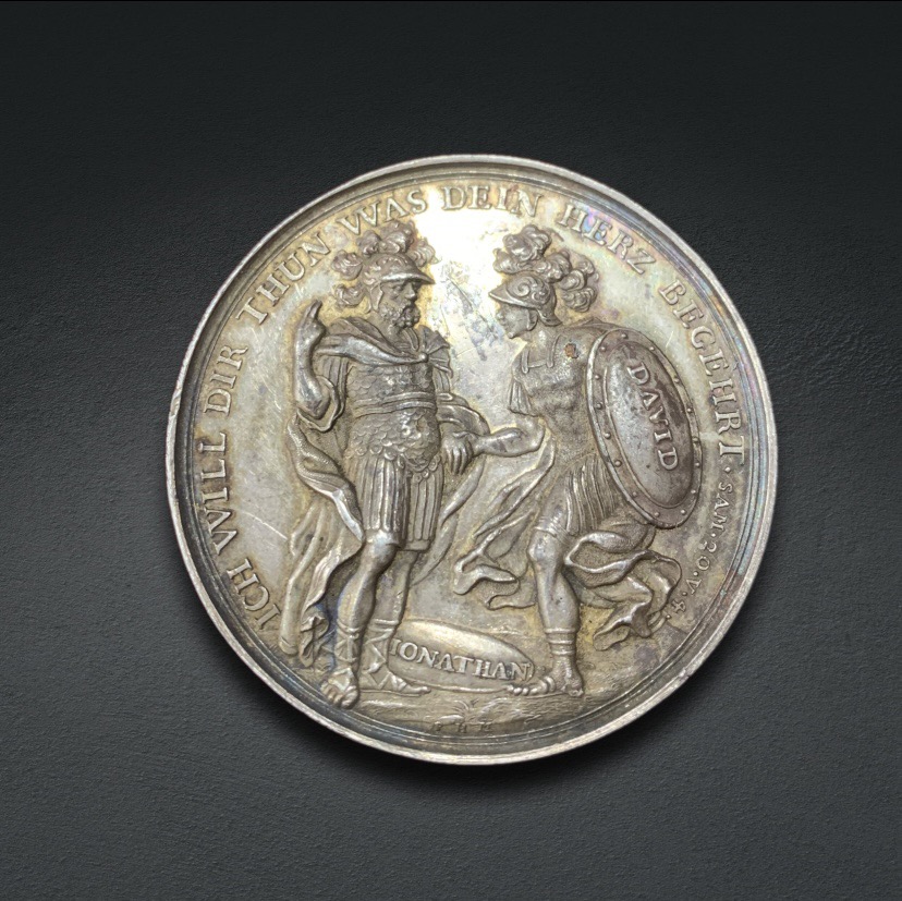 Ασημένιο μετάλλιο με σκηνές από την παλαιά διαθήκη με τον βασιλιά Δαβίδ και τον Ιονάθαν. 50γρ