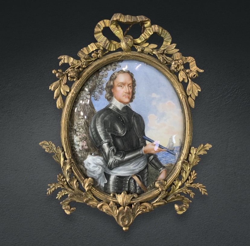 Enamel depiction of Oliver Cromwell, English military and political leader. Table dimensions 22×17 cm.